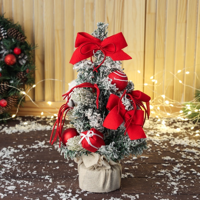 Искусственная ёлка настольная «Зимнее волшебство. Фестивальная, в горшочке», 22 см, ПВХ ветки отгибаются
