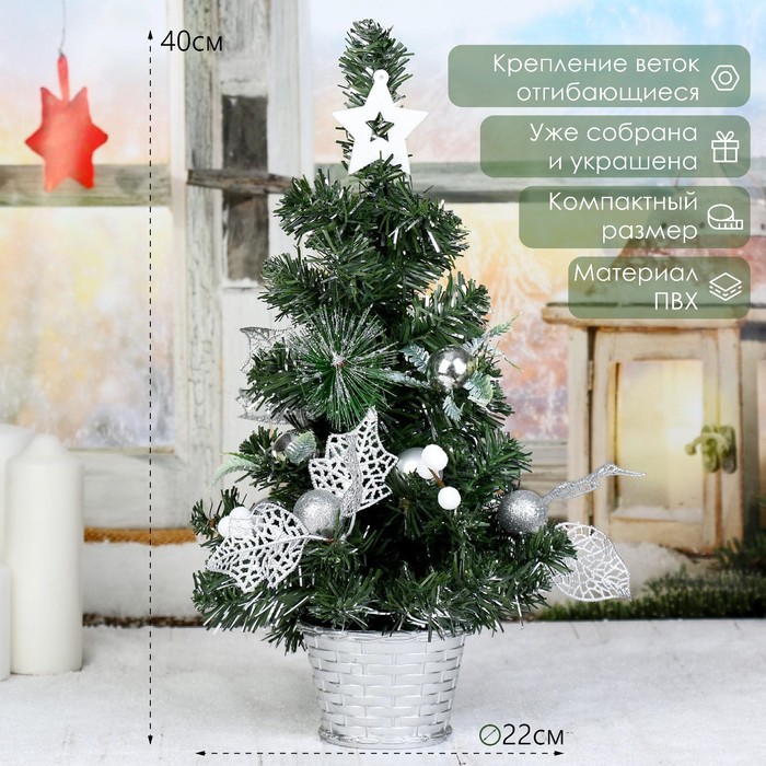 Искусственная ёлка настольная «Зимнее волшебство. Шары», 22 см, ПВХ ветки отгибаются
