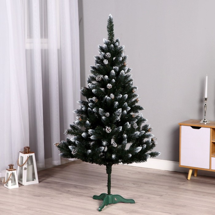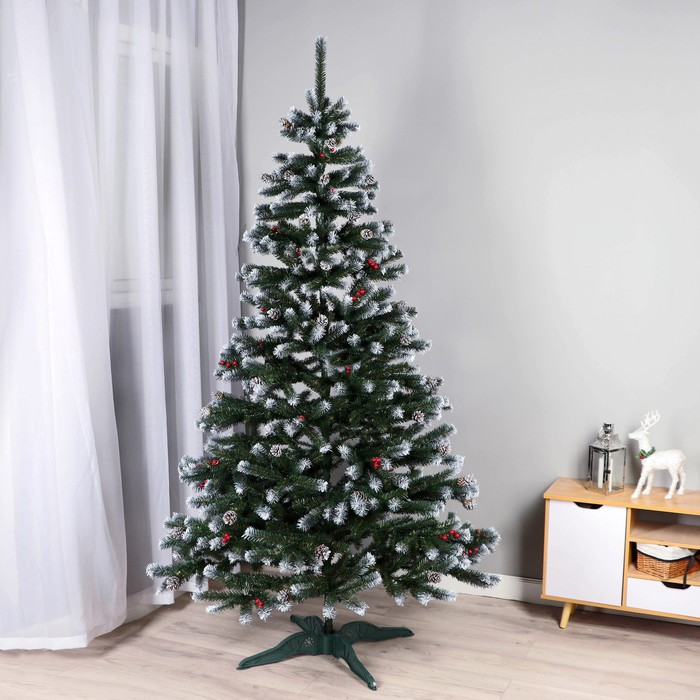 Искусственная ёлка с шишками и инеем «Рождественская сказка», 180 см, ПВХ ветки отгибаются