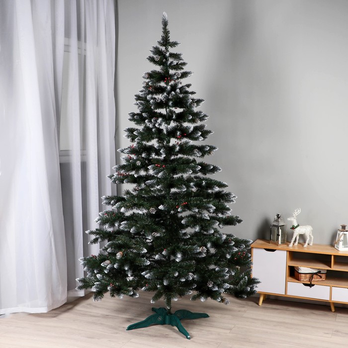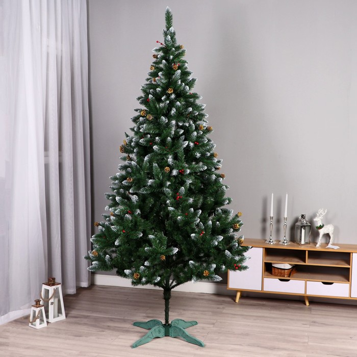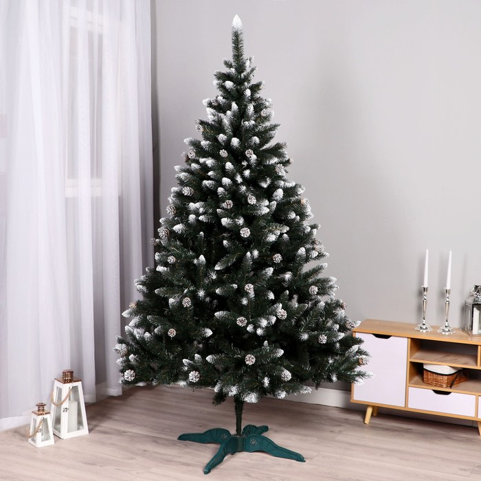 Искусственная ёлка с шишками и инеем «Рождественская сказка», 220 см, ПВХ ветки отгибаются
