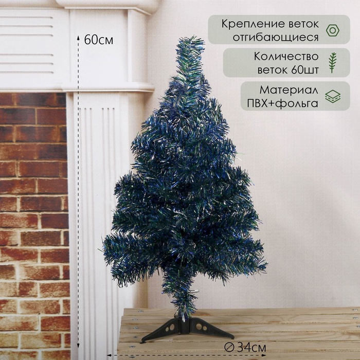 Искусственная ёлка «Зимнее волшебство. Простая», 60 см, d нижнего яруса 30 см, d иголок 6 см, 60 ПВХ веток отгибаются