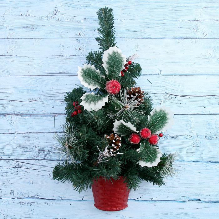 Искусственная ёлка настольная «Зимнее волшебство. Ягодки», в мешочке, 21×13 см