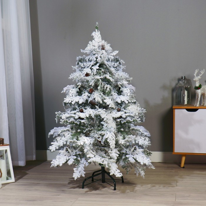 Искусственная ёлка заснеженная с шишками «Зимнее волшебство. Элит», 150 см, 205 смешанных веток на крючках