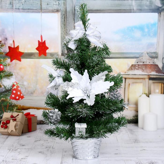 Искусственная ёлка настольная «Зимнее волшебство. Полосатые ленточки», 50 см, белый, ветки отгибаются