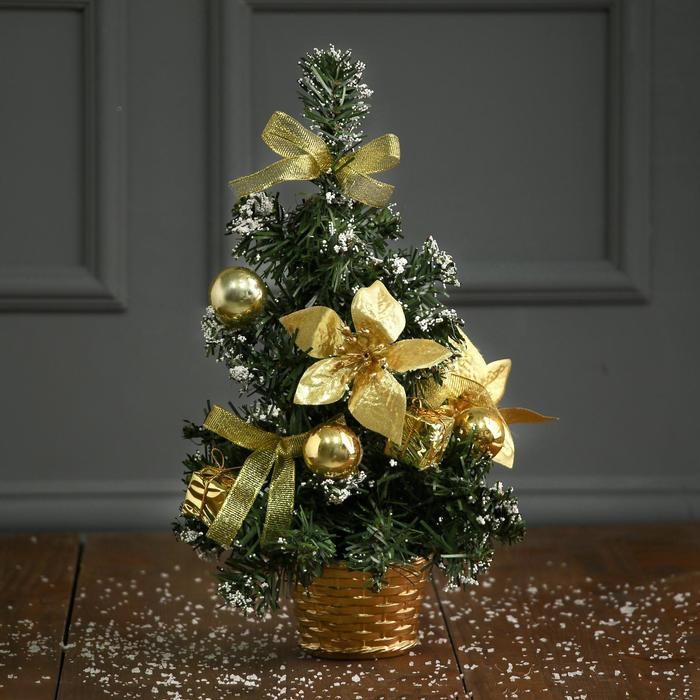 Искусственная ёлка настольная «Зимнее волшебство. Новогодний восторг», 30 см, золотая пуансетия, d нижнего яруса 13 см, ветки ПВХ отгибаются