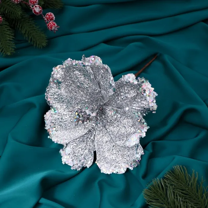 Декор «Зимний цветок», 15.5×12 см, бирюза