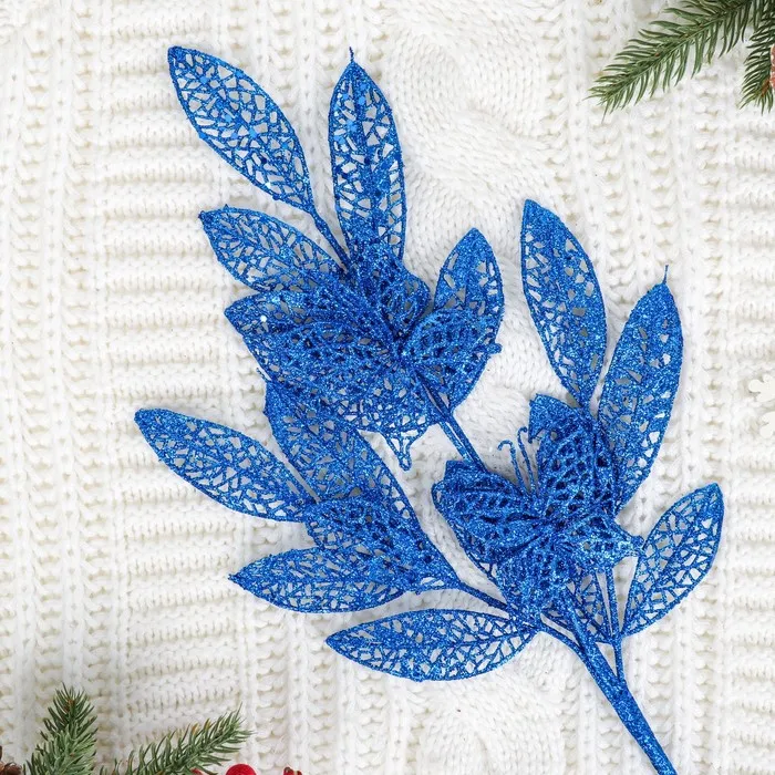 Цветы искусственные «Ветка с бабочкой», h=60 см, синие
