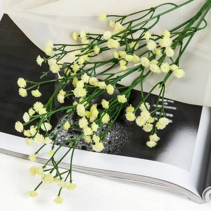 Цветы искусственные «Ветка гипсофилы», 1×53 см, жёлтые