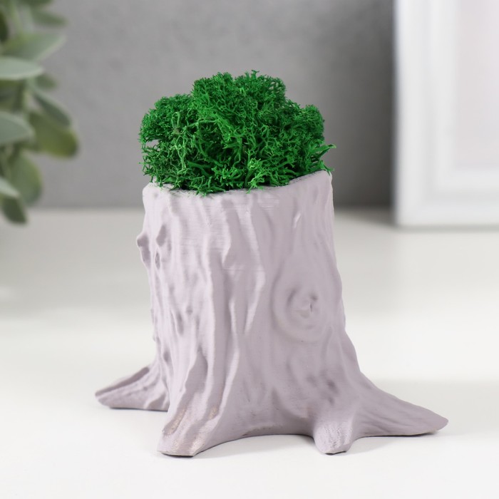 Стабилизированный мох в кашпо из бетона «Пенёк», 7.5×8.5×7 см, серый