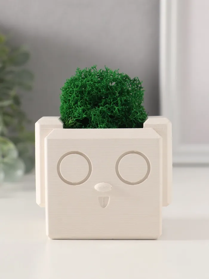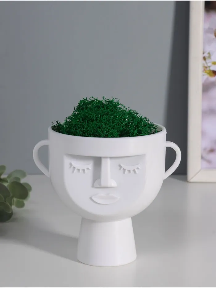 Стабилизированный мох в кашпо из керамики «Мистер Грин любитель тишины», 10×7.5×8 см, белый