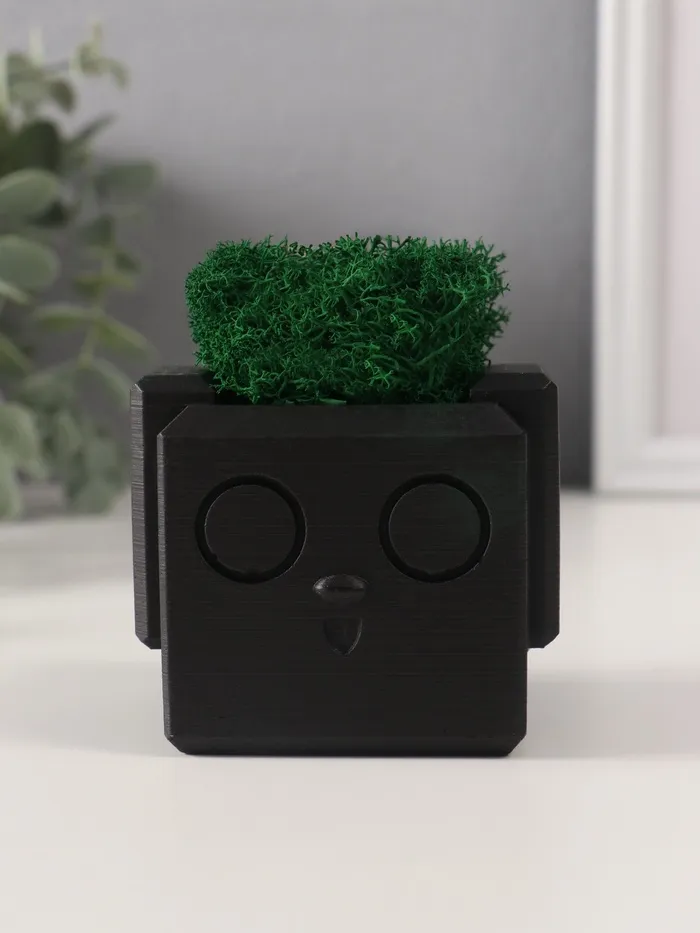 Стабилизированный мох в кашпо из керамики «Мистер Грин на лайте», 8.5×7×12 см, чёрный