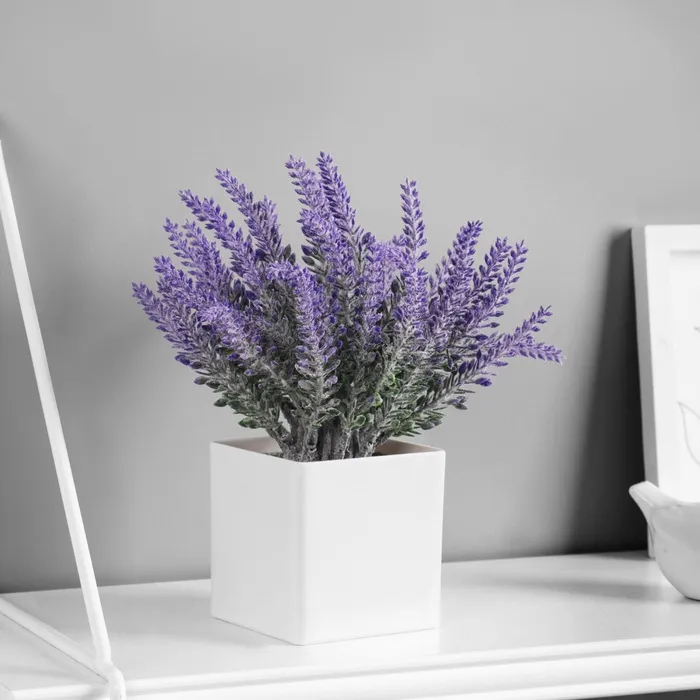 Искусственный цветок в горшке «Лаванда экстра», 8×19 см, сиреневый