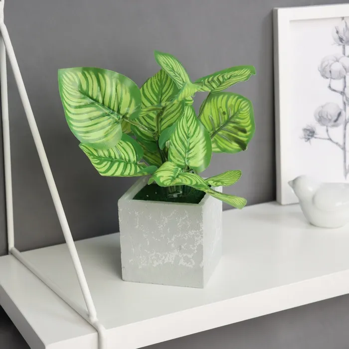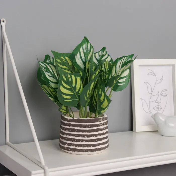 Искусственный цветок в горшке «Калатея орбифолия», 20×8 см, зелёный