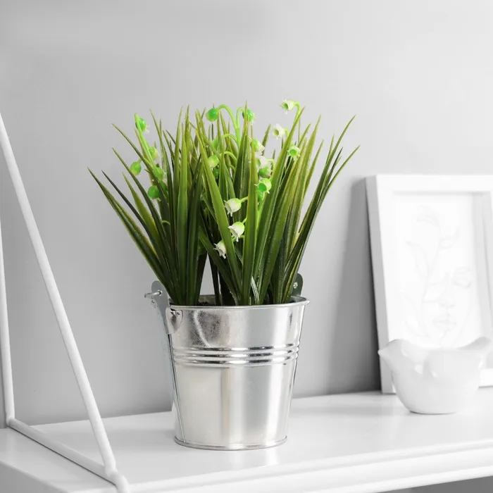Искусственный цветок в горшке «Ландыш премиум экстра», 20×9.5 см, зелёный