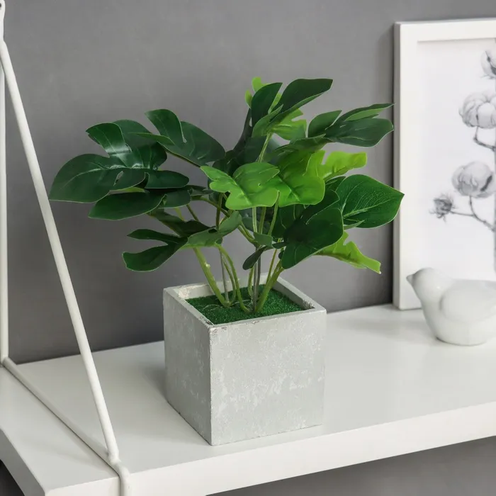 Искусственный цветок в горшке «Монстера комнатная», 29×10 см, зелёный