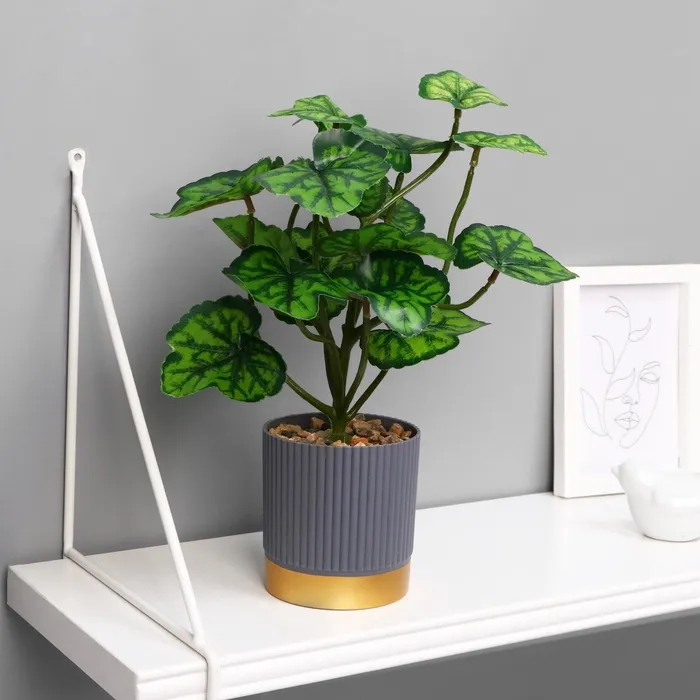 Искусственный цветок в горшке «Алоказия круглолистная», 9.5×27 см