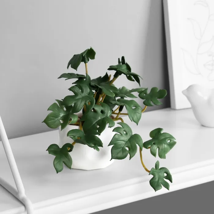 Искусственный цветок в горшке «Рафидофора люкс» (мягкий лист), 9×6 см, МИКС