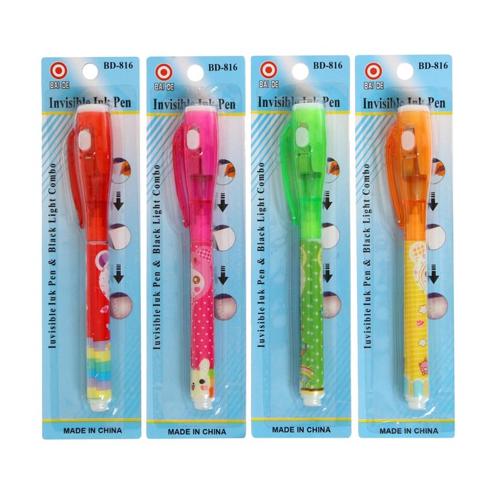 Маркер с невидимыми чернилами Calligrata "Шпион", надпись видно при подсвечивании фонариком, МИКС