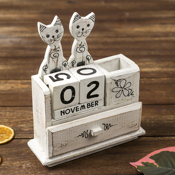 Вечный календарь настольный «Пара кошек», 18×6×22 см, дерево