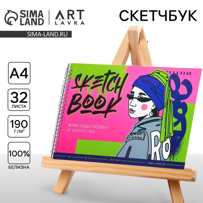 Скетчбук А4, 32 листа, 190 г/м2 «Живу ради искусства»