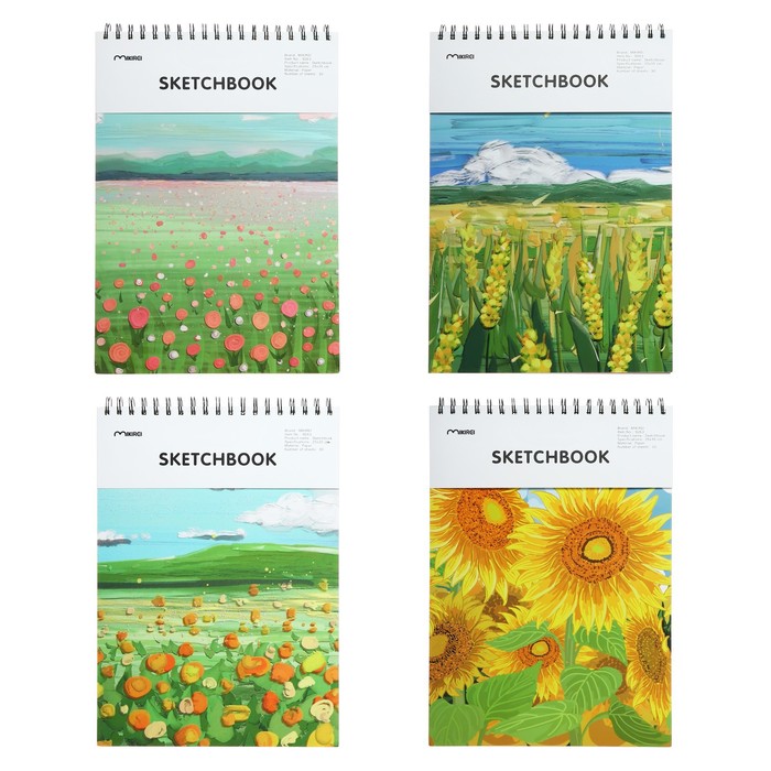 Скетчбук 30 листов, плотность листов 130 г/м², жёсткая подложка, Поля МИКС (25×35 см)