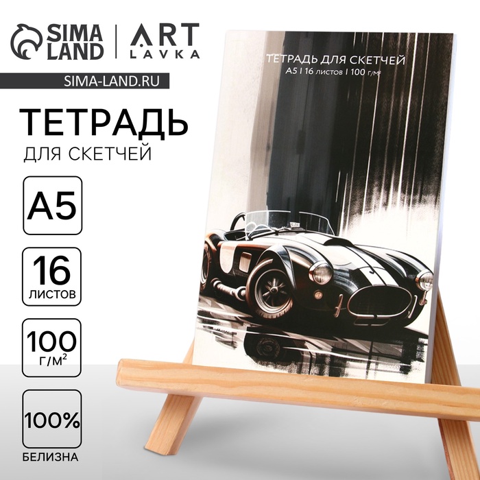 Тетрадь для скетчей, формат А5, 16 листов, плотность 100 г/м2 «Машина»