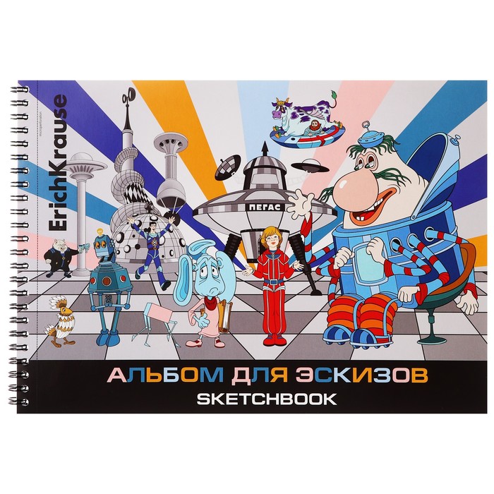Альбом для эскизов А4, 20 листов, блок 120 г/м², на спирали, Erich Krause "Тайна третьей планеты", 100% белизна, перфорация на отрыв, твердая подложка