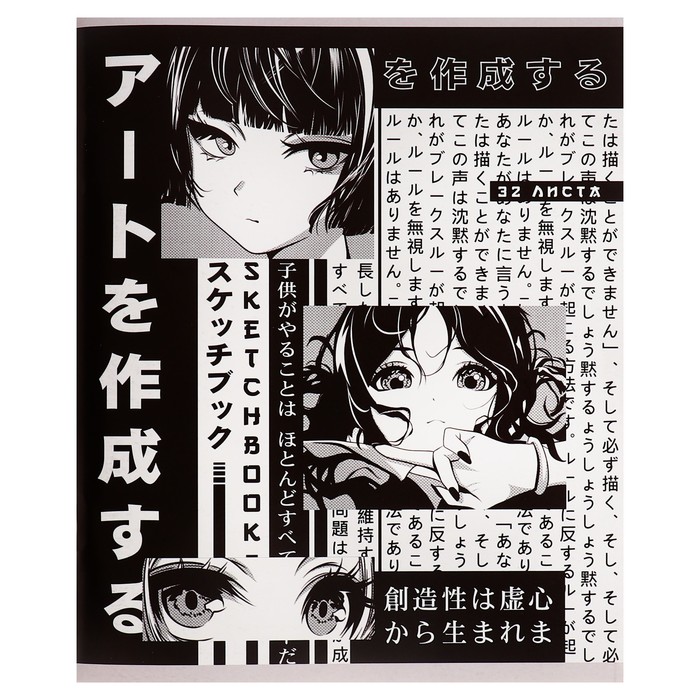 Тетрадь для скетчей А5, 16 листов «Аниме», обложка мелованный картон, блок 100 г/м²