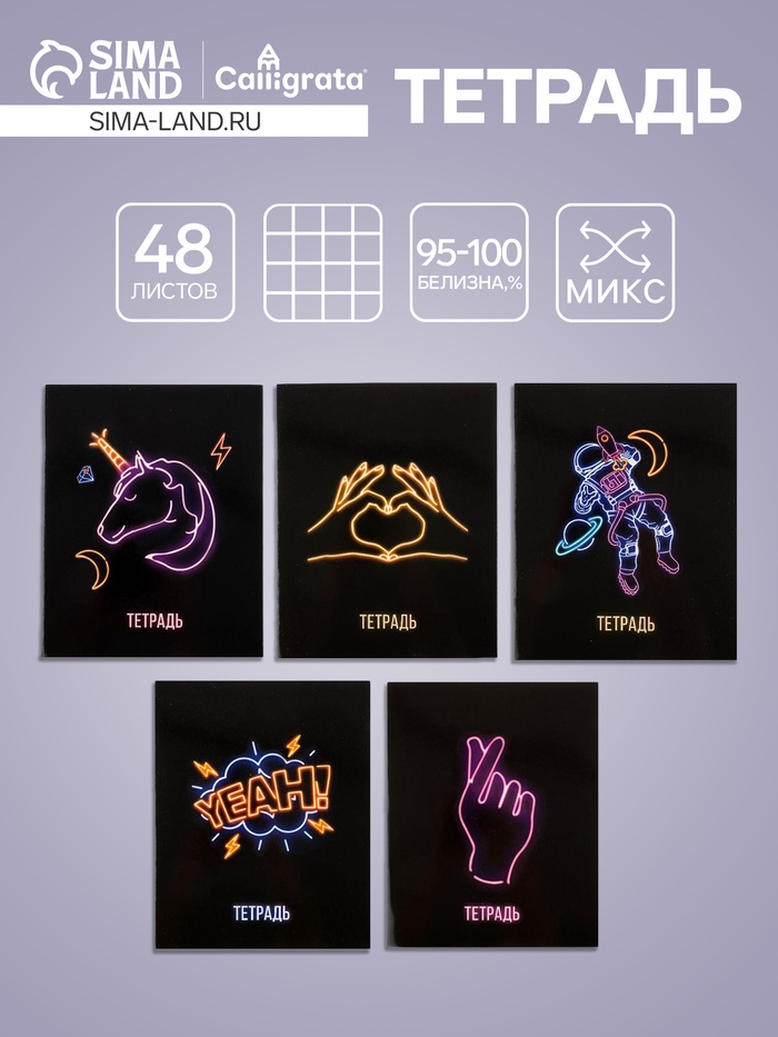 Тетрадь 48 листов в клетку, Calligrata, Neon, обложка мелованный картон, МИКС