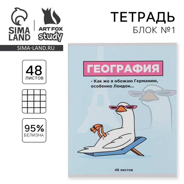 Тетрадь в клетку, предметная, 48 л.,на скрепке, А5 «ПЕРСОНАЖИ. География»