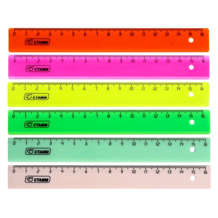 Линейка 16 см Стамм, пластиковая, микс