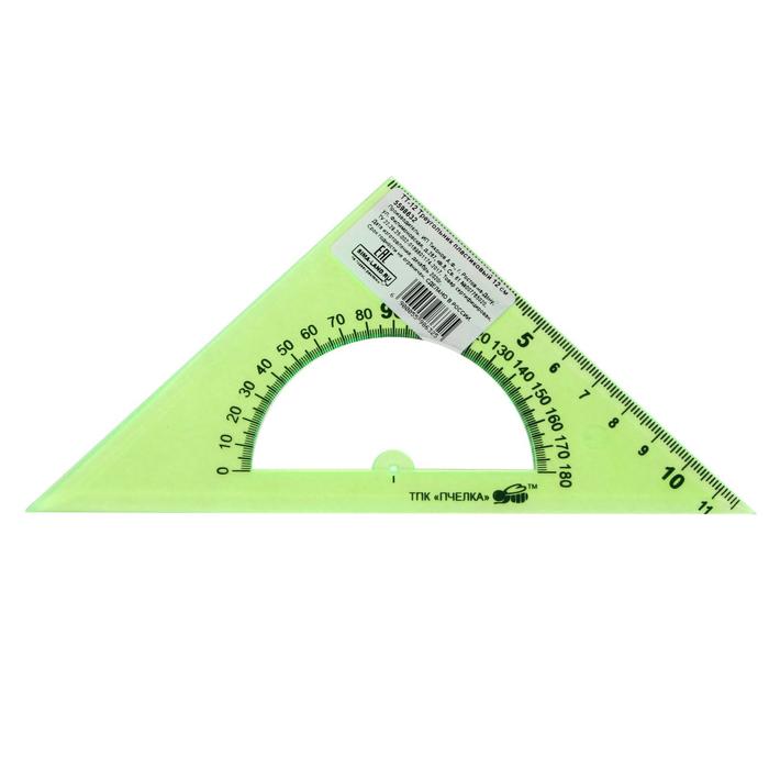 Треугольник Calligrata,12 см, 45°, с транспортиром, пластик, прозрачный МИКС
