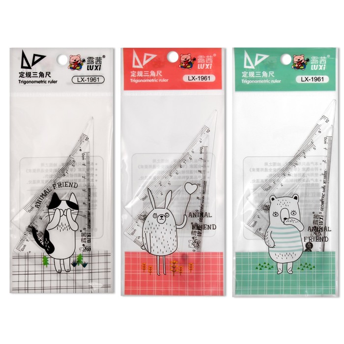 Набор треугольников, 2 штуки, 10 см "Животные", прозрачный, пластик, в пакете