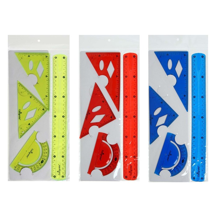 Набор геометрический: линейка 30 см, 2 угольника, транспортир, тонированный, МИКС