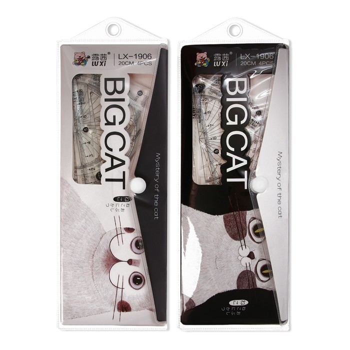 Набор геометрический "Котик"(линейка, транспортир, 2 угольника) в пенале, МИКС