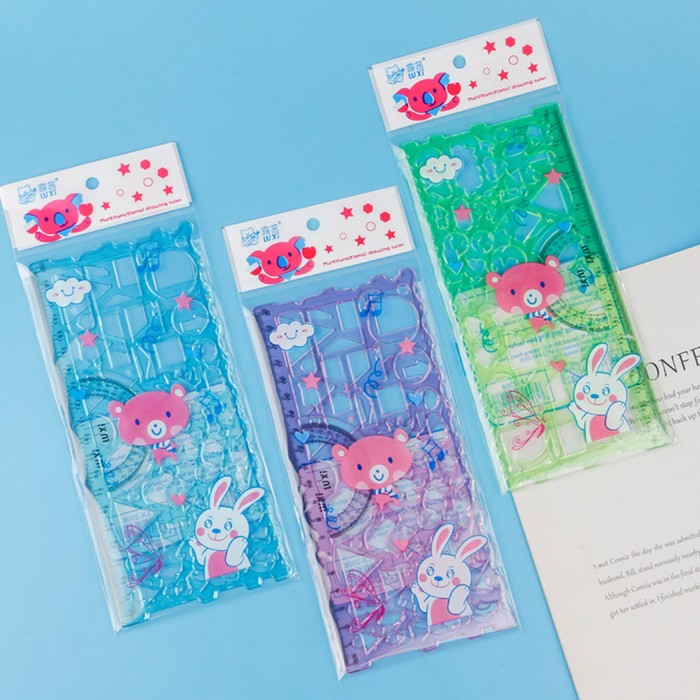 Линейка-трафарет, пластик, с транспортиром, для черчения фигур, МИКС