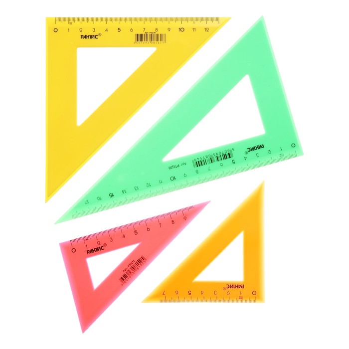 Набор треугольников 4 штуки, Calligrata катет 9/12/14/20 см, непрозрачные, МИКС
