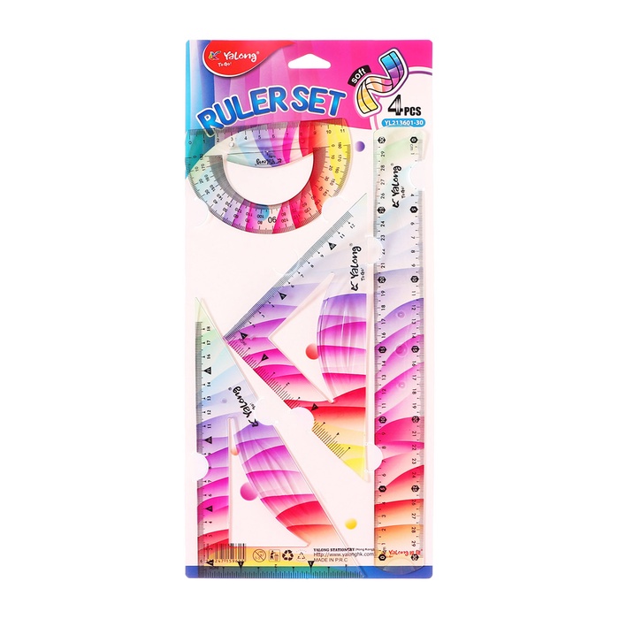 Набор геометрический гибкий силиконовый (линейка 30см+2 угольника+транспортир) Градиент