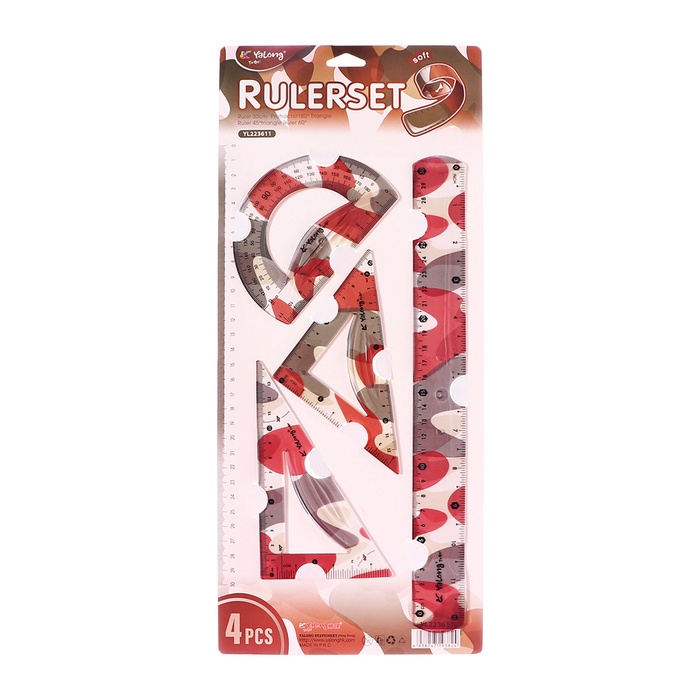Набор геометрический гибкий силиконовый (линейка 30см+2 угольника+транспортир) Миллитари