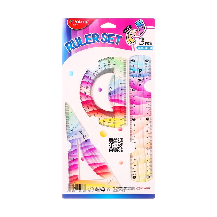 Набор геометрический гибкий силиконовый (линейка 20см+угольник+транспортир) Градиент