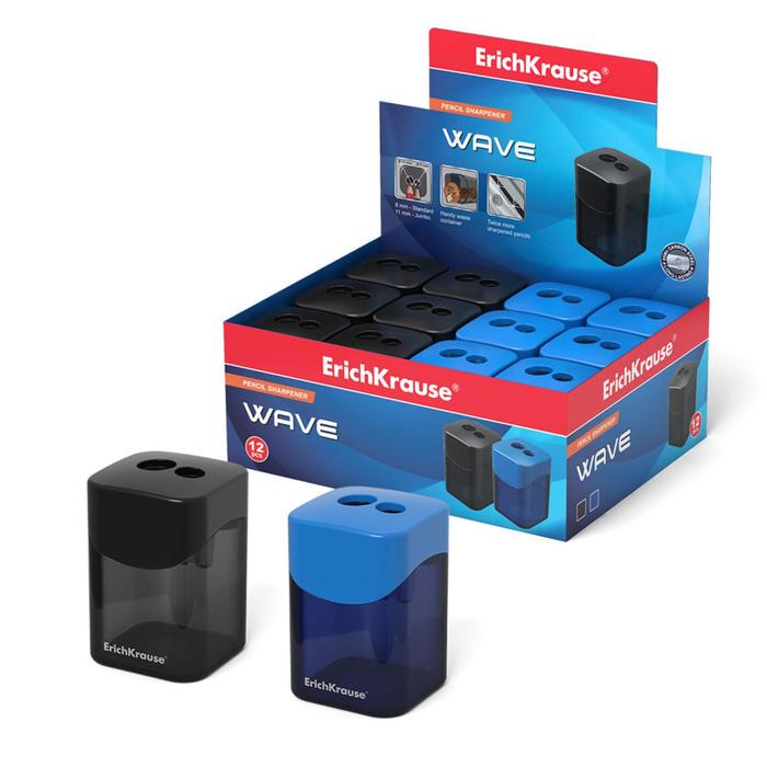 Точилка ErichKrause Wave, 2 отверстия, с контейнером, отверстия диаметром 8 мм и 11 мм, МИКС
