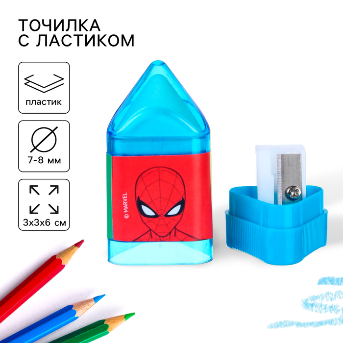 Точилка с ластиком, пластиковая, «Человек-паук»