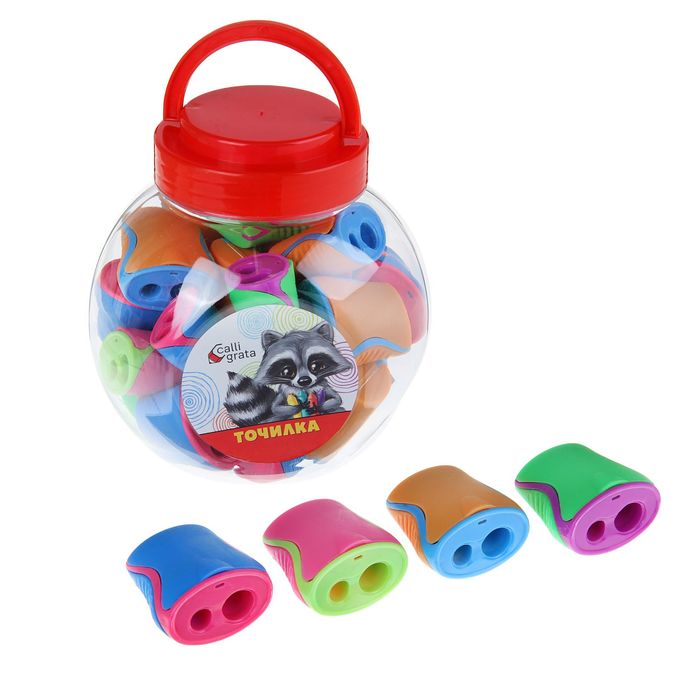 Точилка двойная Calligrata «Классика», с контейнером, МИКС