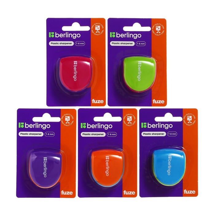 Точилка Berlingo «Fuze Ergo», 1 отверстие, с контейнером, пластиковая, блистер, европодвес, МИКС