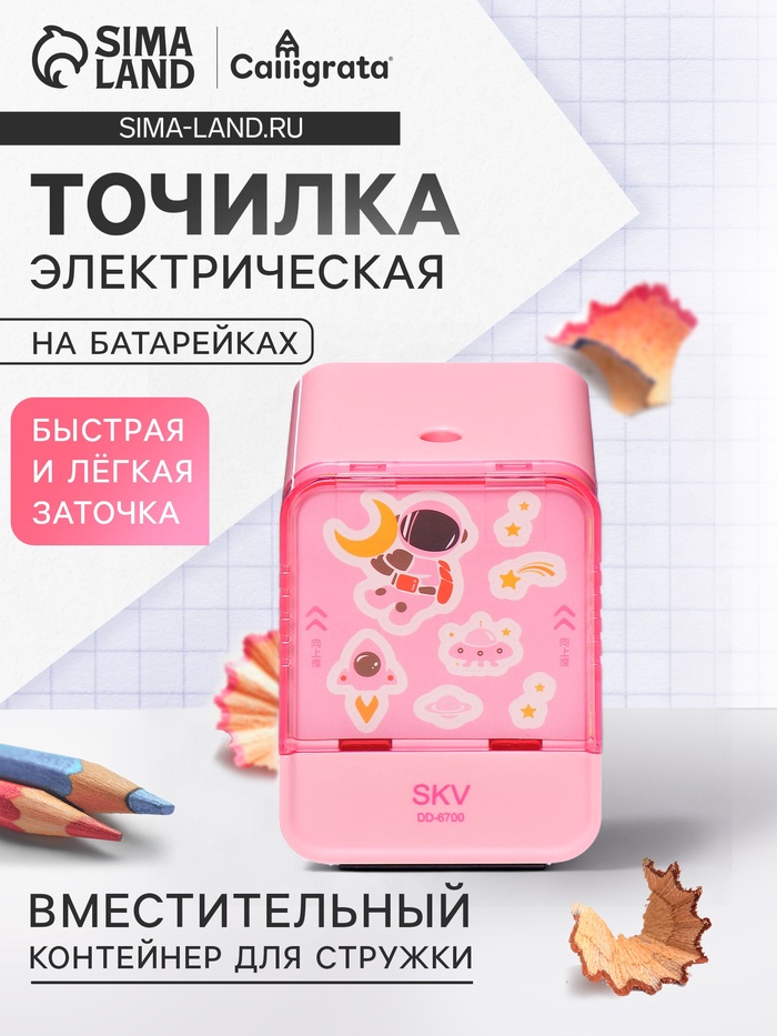 Точилка для карандашей электрическая Calligrata, с контейнером, на батрейках (в комплект не входят), розовая