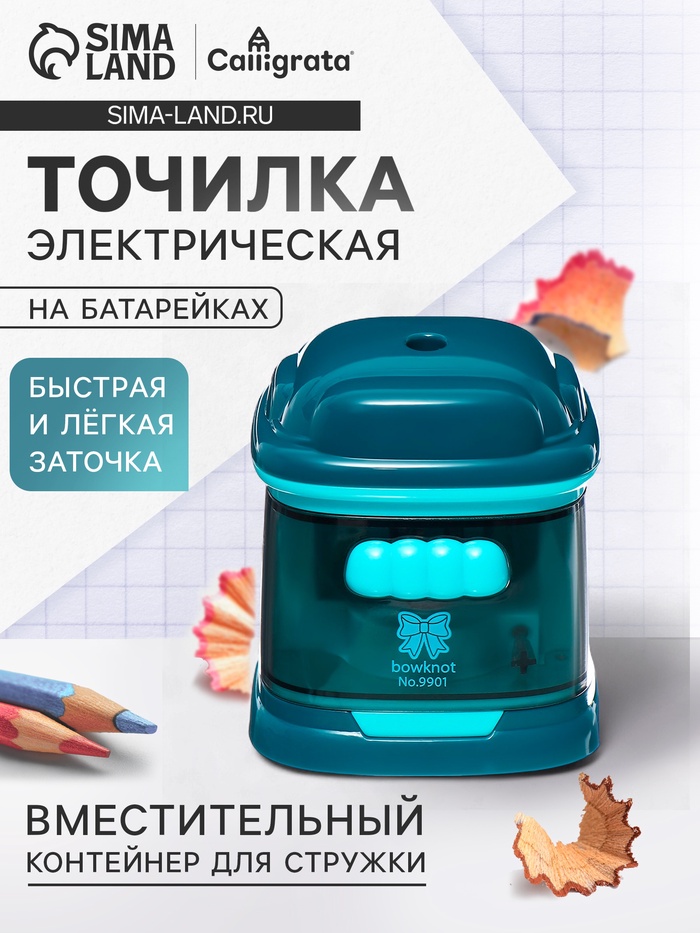 Точилка для карандашей электрическая Calligrata, с контейнером, на батрейках (в комплект не входят), тёмно-бирюзовая
