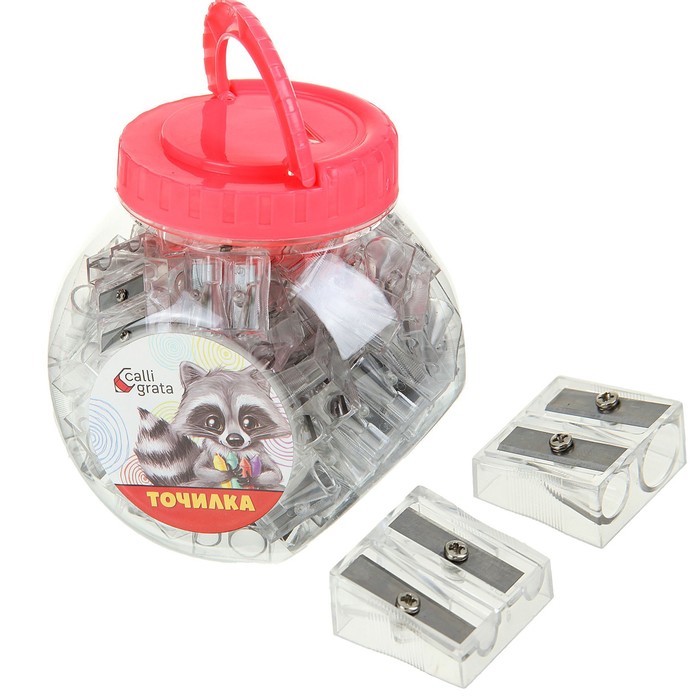 Точилка двойная, пластик/металл, корпус прозрачный