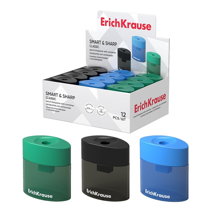 Точилка Erich Krause SMART & SHARP, 1 отверстие, с контейнером, отверстие диаметром 8 мм, МИКС