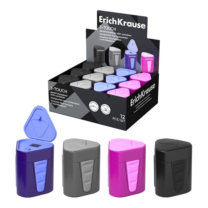 Точилка 1 отверстие Erich Krause 3-TOUCH, с контейнером, отверстие диаметром 8 мм, микс