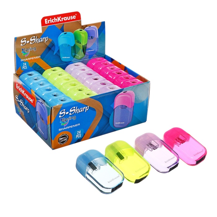 Точилка одинарная ErichKrause "S-Sharp Spring", пластик, с контейнером, высококачественное лезвие, микс